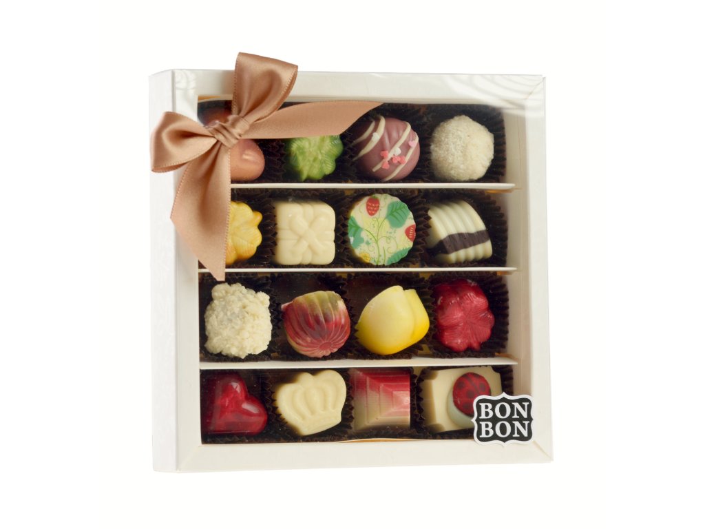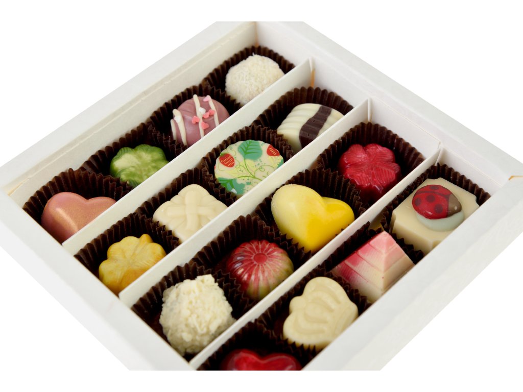 Jednotlivé druhy pralinek v setu se mohou lišit od fotografie, v závislosti na naší aktuální, čerstvé nabídce vyrobených druhů