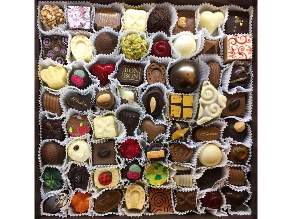 Jednotlivé druhy pralinek v setu se mohou lišit od fotografie, v závislosti na naší aktuální, čerstvé nabídce vyrobených druhů