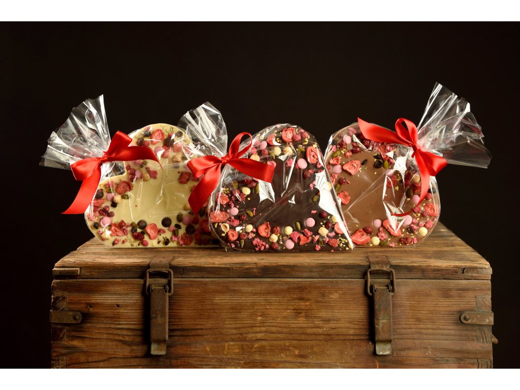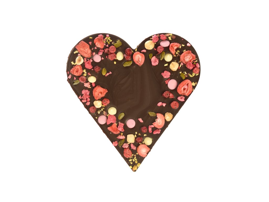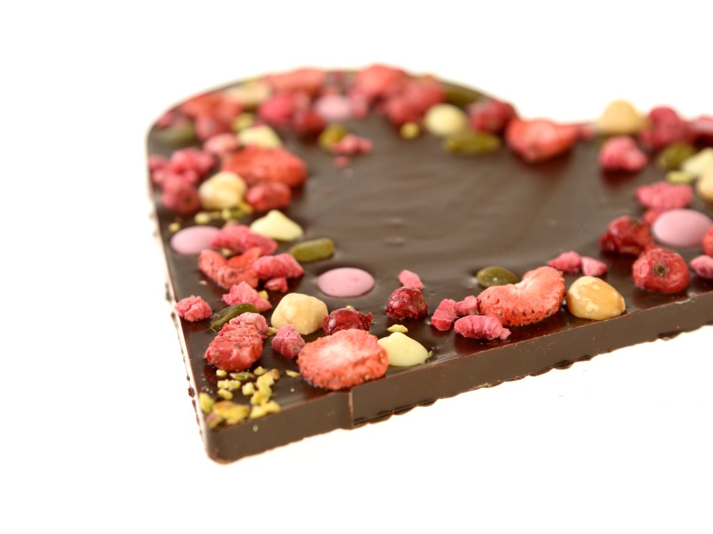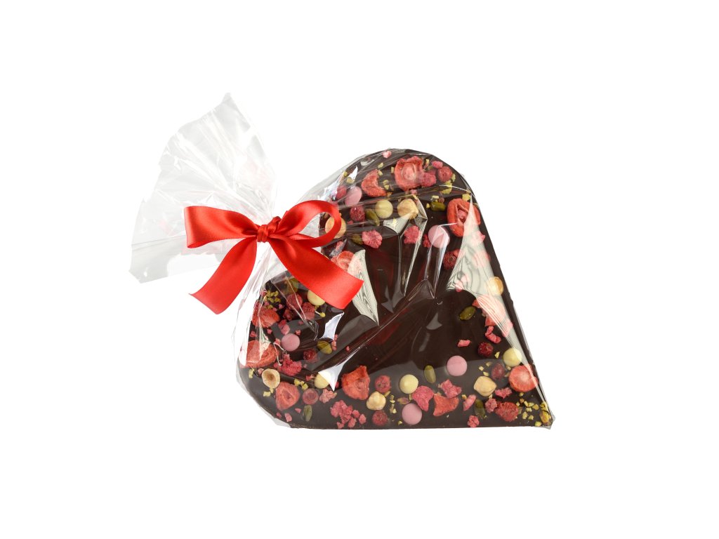 Složení: kakaová hmota, cukr, kakaové máslo, emulgátor: E322-sójový lecitin, přírodní vanilkový extrakt, obsah kakaa 58%. Může obsahovat stopy ořechů a mléka, drcené pistácie, mandle, lískové ořechy, maliny sušené mrazem.